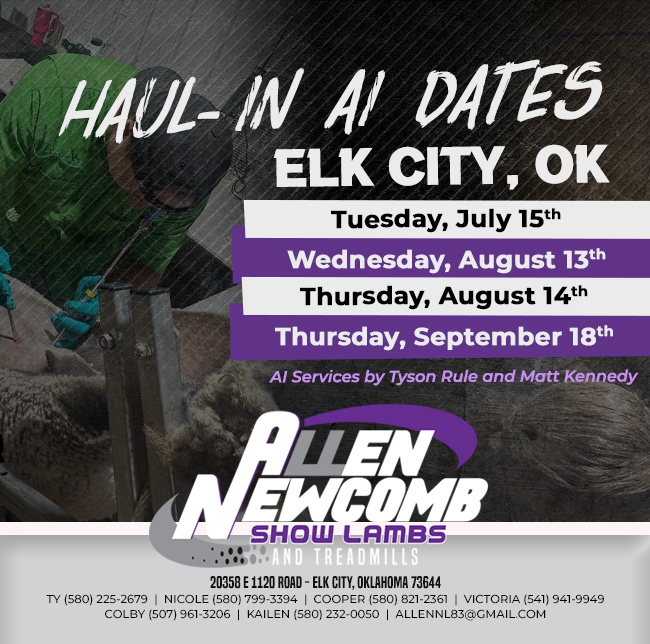 The Allens and Newcombs have worked hard to establish their name in the livestock industry and would love to help you. Feel free to call and discuss any needs you may have with show lambs, breeding stock, treadmills, or feed additives.